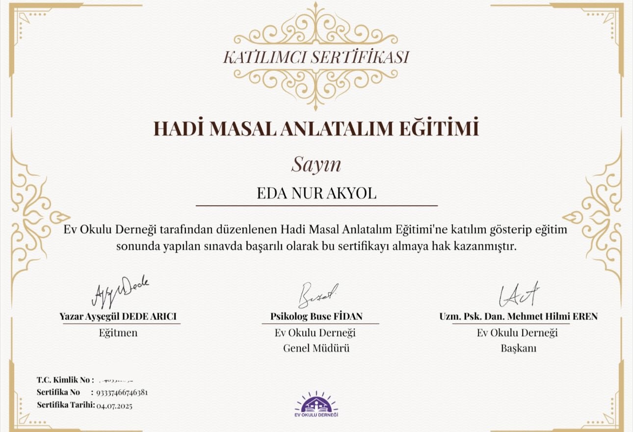 Merhaba, ben Dil ve Konuşma Terapisti Eda Nur Akyol.