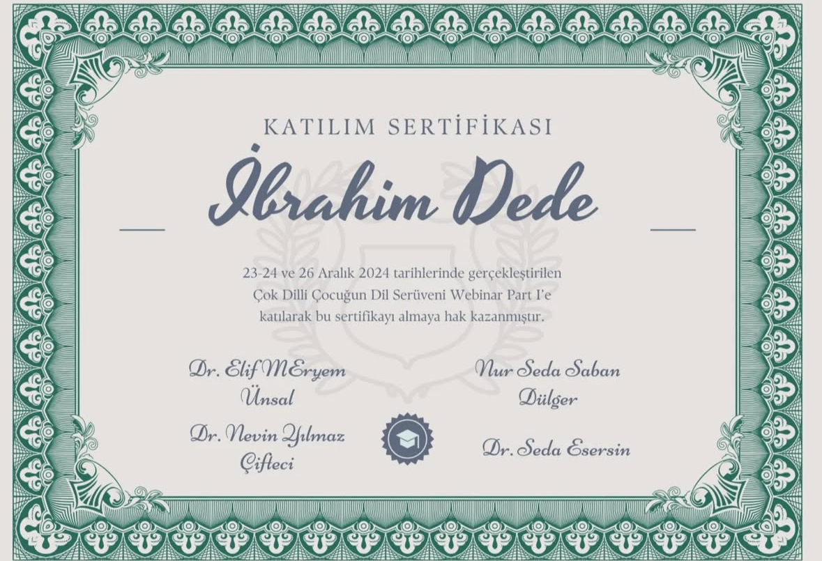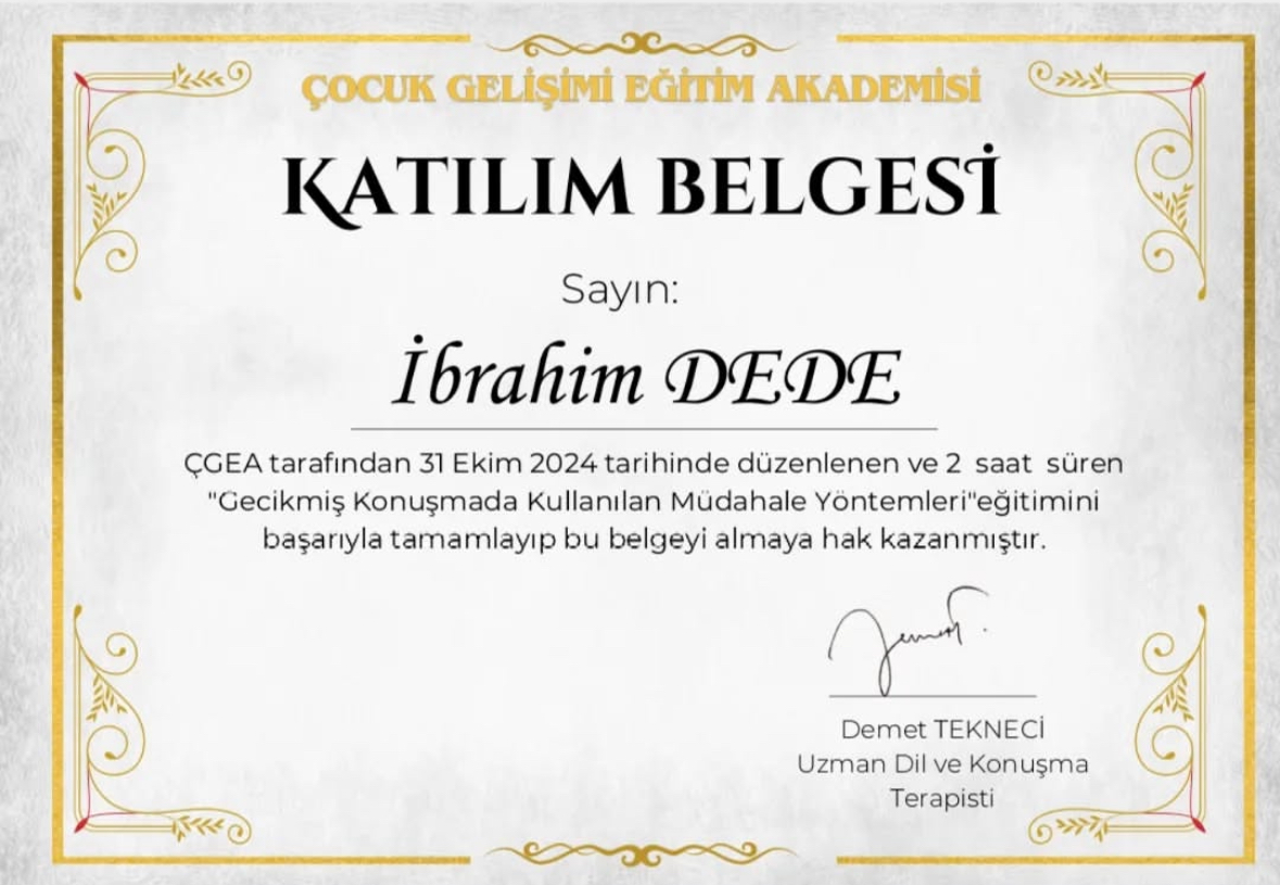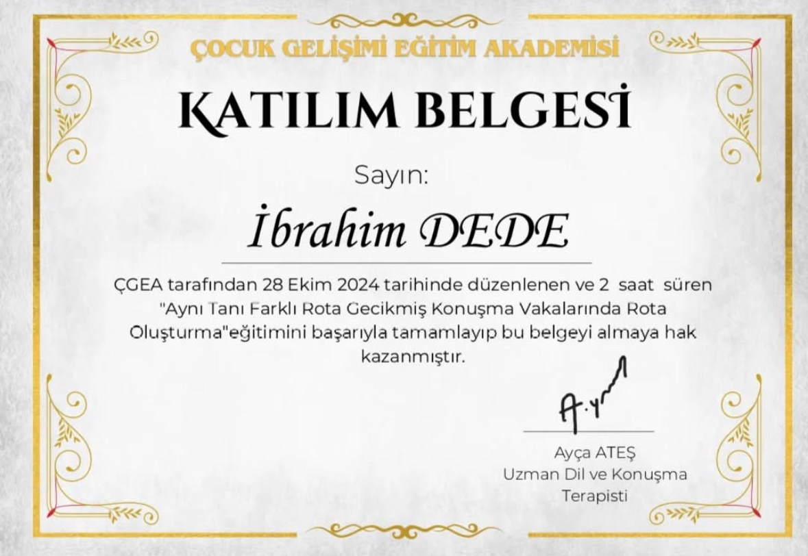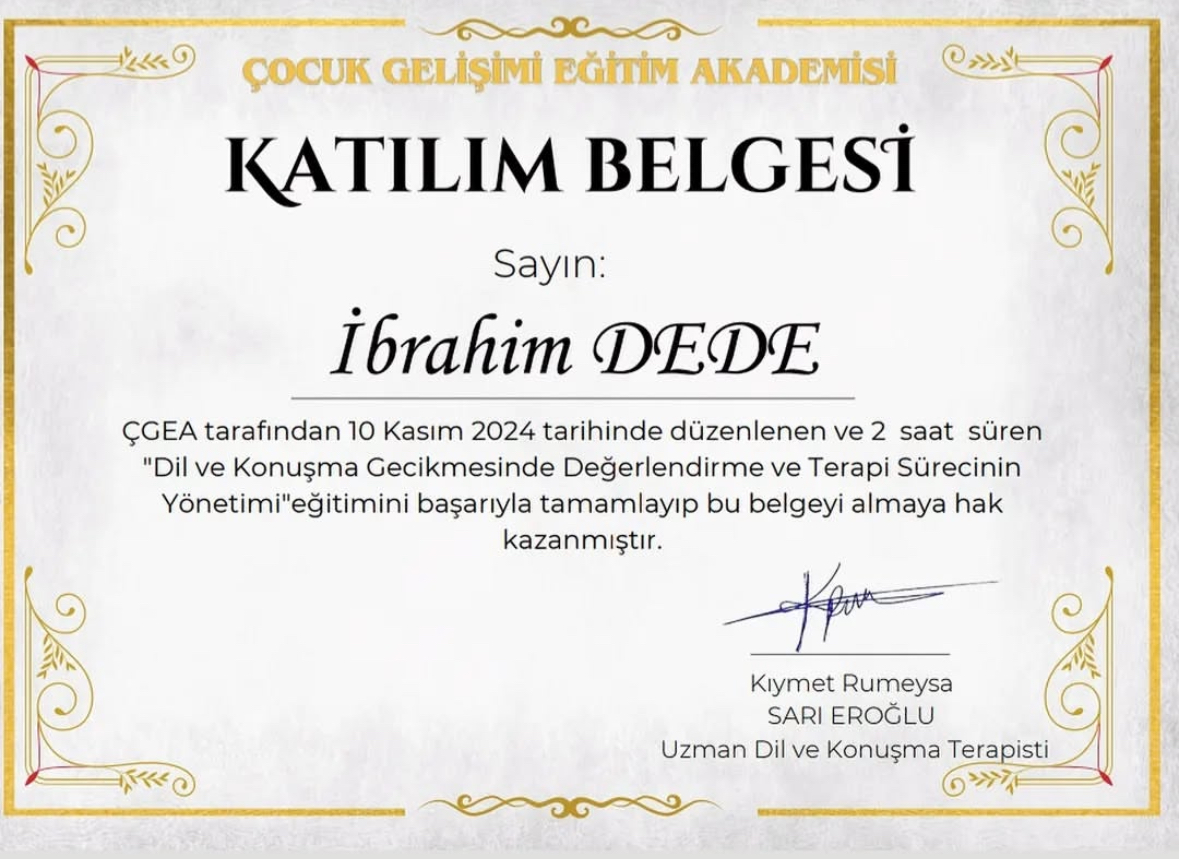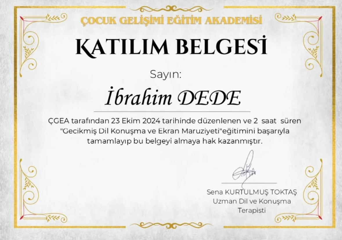 Ankara Yıldırım Beyazıt Üniversitesi Dil ve Konuşma Terapisi Bölümü mezunuyum. Her yaş grubunda dil ve konuşma bozuklukları ile çalışıyorum. Özellikle gecikmiş dil ve konuşma terapisi ve kekemelik terapisi alanlarında bilimsel yöntemlere dayalı, aile iş birliğini temel alan online ve yüz yüze dil ve konuşma terapisi hizmeti sunuyorum.